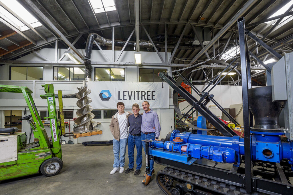 That insight laid the foundation for Levitree’s dual-mission approach: fighting coastal flooding while sequestering carbon. Laurence graduated from UC Berkeley in 2024 with a degree in mechanical engineering. Cole, a close friend of Laurence since high school, joined the team to lead computational modeling. “I started working on the actual injection modeling, with how the wood slurry propagates underground during injection,” he says. The challenge? “If you imagine what’s underneath your feet, it’s not much—but it’s made up of all these reactive, shifting minerals that affect how the slurry moves,” he explains. To address the issue, the team developed AI modeling systems that update their understanding of underground geology in real time during each injection.